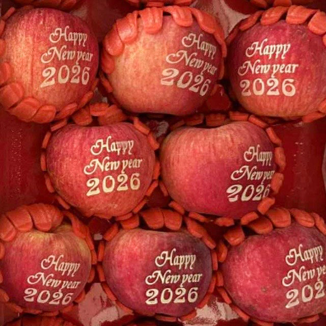These apples are grown with paper stencils attached to block the sunlight, leaving natural and elegant lettering once the apples mature. Makes such a perfect and unique new year present!